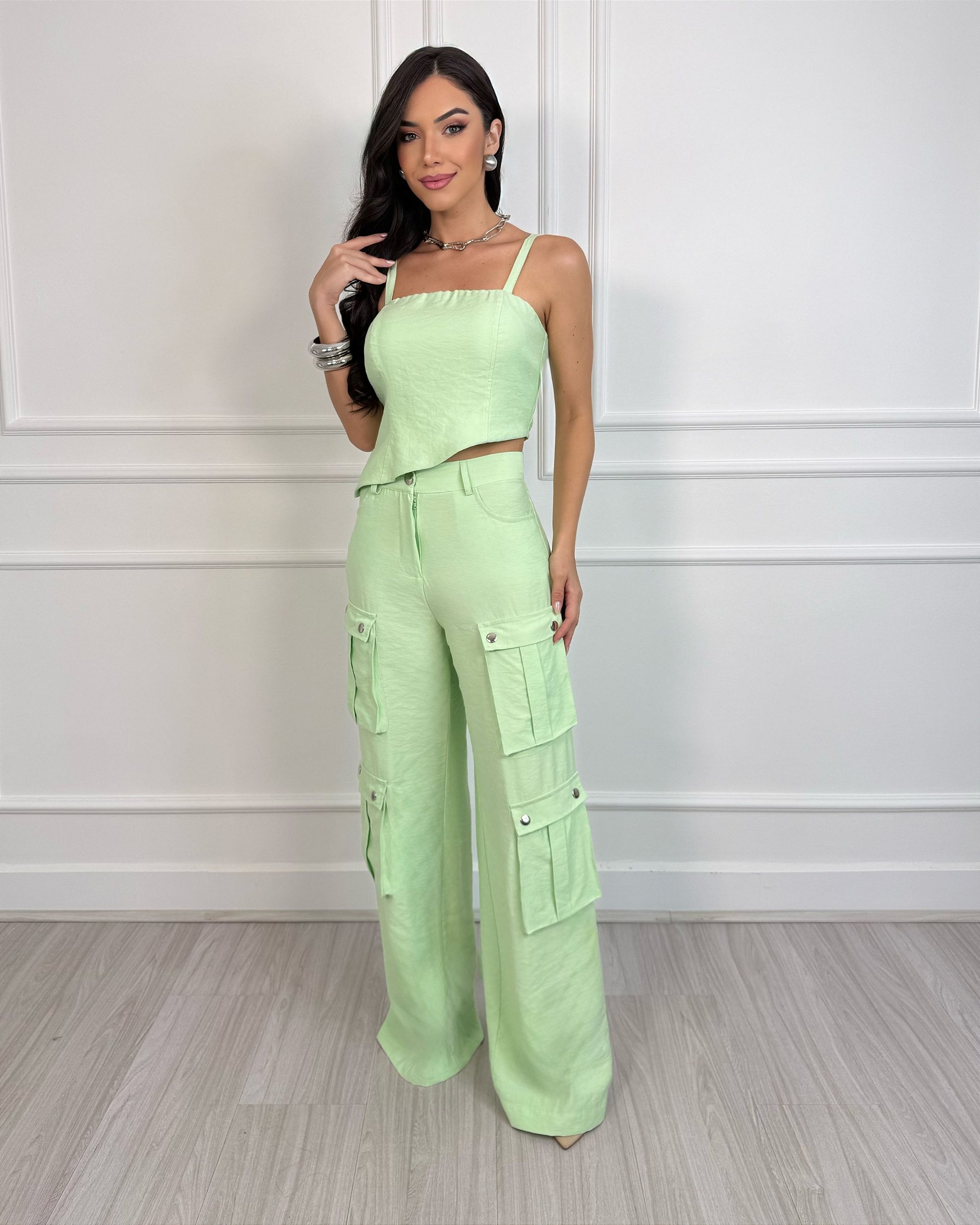 CONJUNTO GIOVANA é perfeito para mulheres que desejam um look sofisticado e cheio de personalidade. Este modelo lindíssimo oferece um caimento perfeito e conforto excepcional e está super em alta.